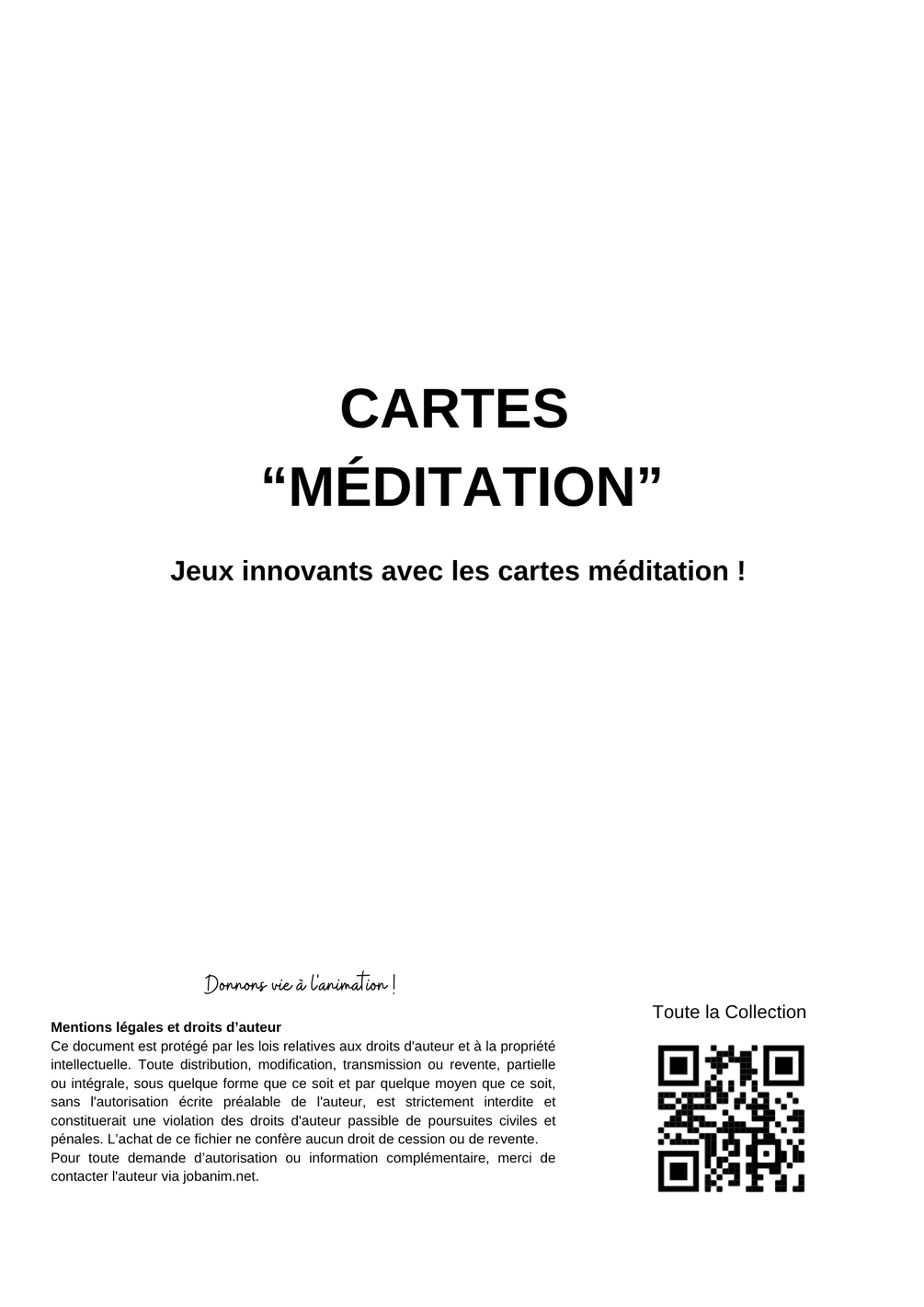 Chaque carte propose une expérience méditative simple, originale et accessible à tous, pour inviter à la détente, la créativité et à la connexion au moment présent.